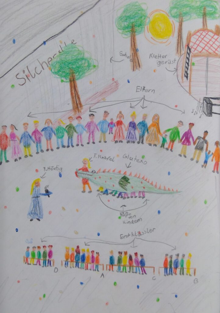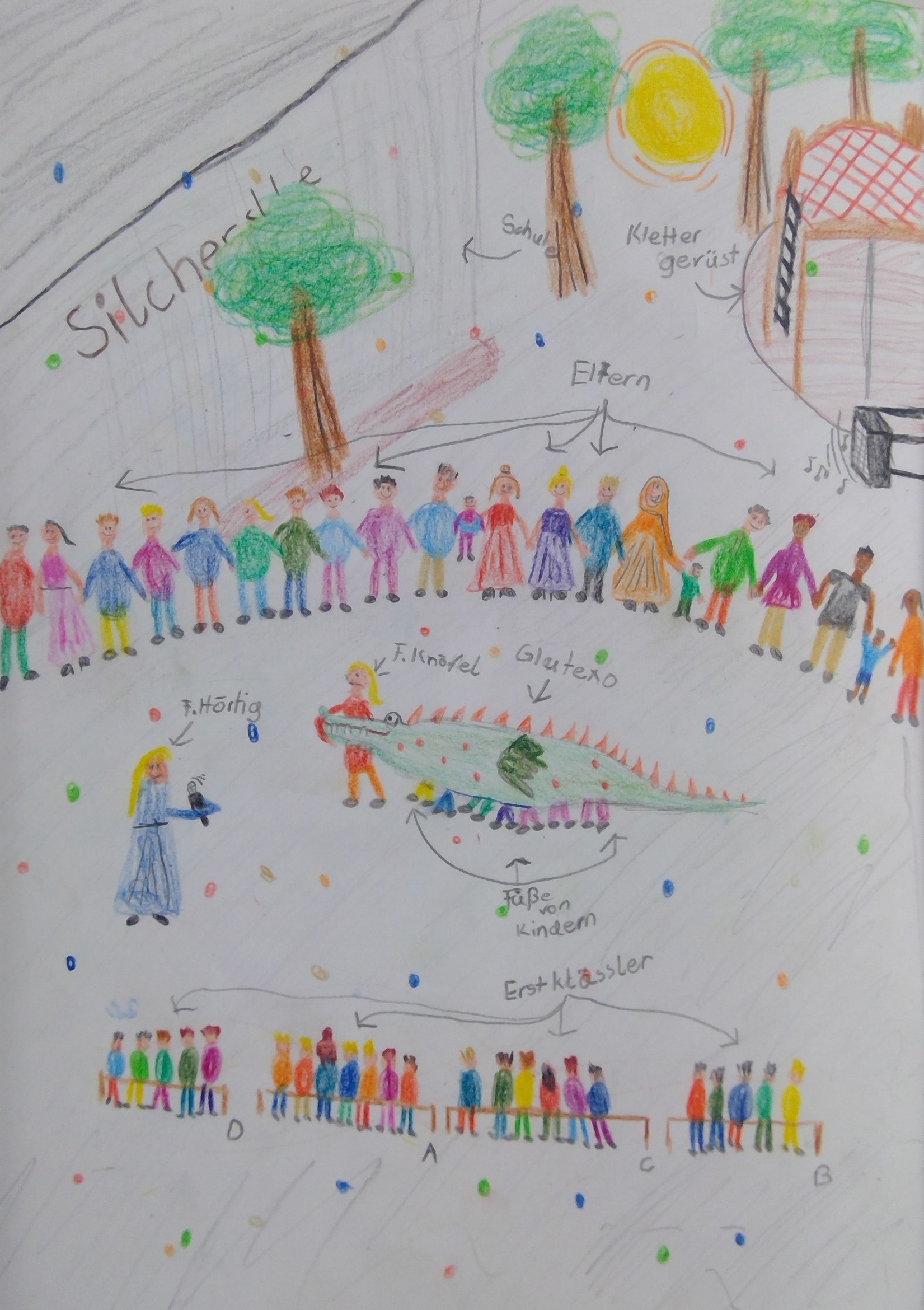 Heute war ein aufregender Tag, denn ich habe mein Patenkind kennengelernt. Die Einschulungsfeier war toll. Es kam wieder Glutexo mit der Nebelmaschine. Er hat erzählt, dass er nach der Schule ins Fitnessstudio geht. Das fand ich lustig. Später im Klassenzimmer haben wir uns vorgestellt. Es hat den ganzen Tag die Sonne geschienen. Die Erstklässler haben etwas in ihr Schulkindheft eingetragen. Ich habe meinem Patenkind geholfen das Datum zu schreiben und danach bin ich wie immer in die Betreuung gegangen.