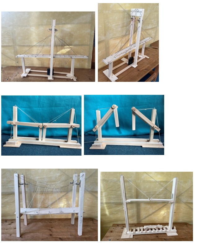 Am nächsten Tag durfte jede Gruppe eine eigene Brücke entwerfen, sie skizzieren und bauen. Es entstanden zwei Zugbrücken eine Hängebrücke sowie eine Schrägseilbrücke. Die Ergebnisse waren beeindruckend und die Kinder hatten eine Menge Spaß.